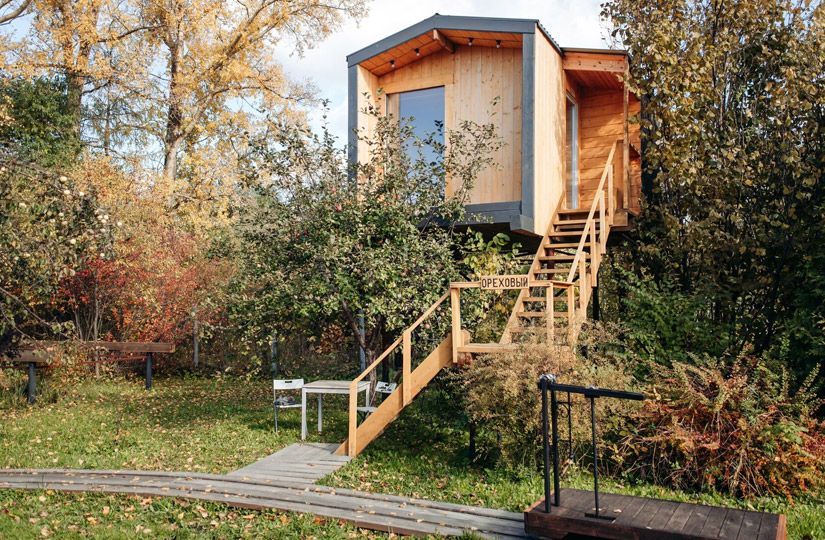 Глэмпинг «Домик на дереве» предлагает немного оторваться от земли и почувствовать себя лесным жителем, проживающим у Плещеева озера. Можно поселиться в барнхаусе на высоте четырех метров, в доме по соседству с семьей милых кроликов или в доме, который вращается вокруг своей оси. Гости гуляют по песчаному пляжу, катаются на забавной ручной дрезине по железной дороге и готовят на общей кухне.