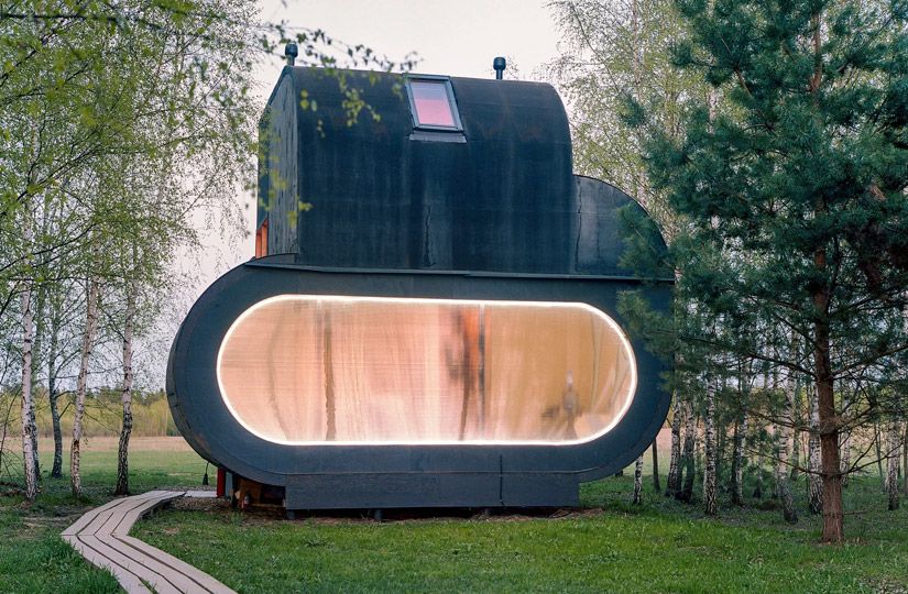 Например, в доме-трубе «Русское идеальное» авторства главного архитектора Москвы Сергея Кузнецова, «Доме-антресоли», созданном из найденных в окрестностях парка материалов, «Пьяном доме», который слегка кренится, или «Доме с люстрой» — без окон, зато со световым проемом в потолке.