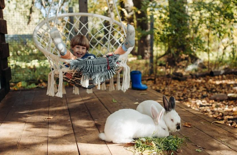 Чем заняться: гладить кроликов, которые живут на территории глэмпинга, кататься на сапбордах, участвовать в мастер-классах по живописи, париться в бане, качаться над озером на качелях, плавать.