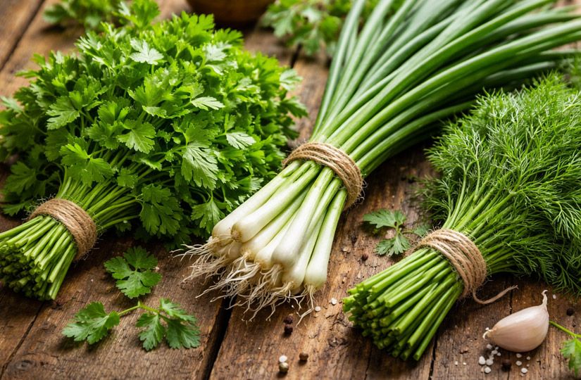 - горсть зелени (шпинат, лук, укроп, петрушка);