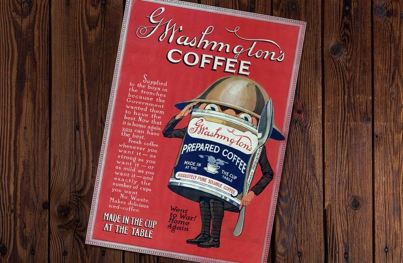 Зато в 1910 году американец бельгийского происхождения, живший в Гватемале, сумел наконец попасть в цель. Химик Джордж Констант Вашингтон создал компанию «Red E Coffee» и на большой фабрике запустил производство далеко уже не первого в мире, но зато впервые получившего широкую известность растворимого кофе. Вашингтон подошел к делу как бизнесмен: он вложился в рекламу, а затем удачно занял нишу продуктового поставщика для армии в период Второй мировой войны. Оказалось, что сухой кофейный концентрат – идеальная вещь на тот случай, когда у человека нет возможности долго и со вкусом готовить натуральный зерновой кофе. Солдаты американских войск были глубоко благодарны мистеру Вашингтону, заваривая продукцию его фабрики в окопах, а потом принесли идею быстрорастворимого напитка и к себе домой. Оказалось, что их женам тоже больше нравится не стоять у плиты с кофейником, а готовить любимый бодрящий продукт за пару минут с помощью горячей воды.