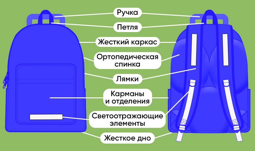 Безопасность. На школьном рюкзаке обязательно должны быть светоотражающие элементы: специальные неоновые нашивки или серебристые полосы по периметру. Ранним серым утром осенью или зимой они сделают ребенка заметным для автомобилистов. Кроме того, качественное фирменное изделие должно быть сертифицировано, иметь на этикетке маркировку возраста (6+) и назначение «рюкзак школьный».