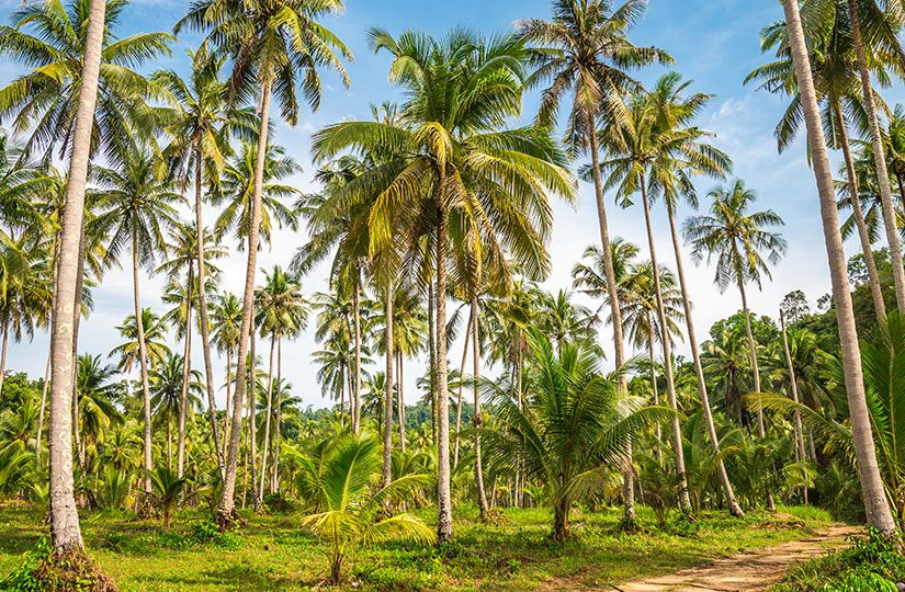 Давайте для начала проследим путь создания самого популярного в мире растительного молока. Он начинается с огромной плантации, где на одном гектаре может расти более сотни пальм. Каждое дерево способно приносить от 10 до 200 орехов в год (в зависимости от возраста и сорта).
